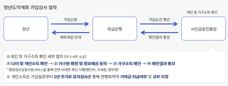 청년의 중장기 자산형성 지원을 위한 정책형 금융상품으로 만기 5년(60개월) 동안 매월 70만 원 한도 내에서 자유롭게 납입을 하면 매월 최대 6%의 정부기여금을 지급받고 이자소득에 대한 비과세 혜택을 제공하는 상품입니다.