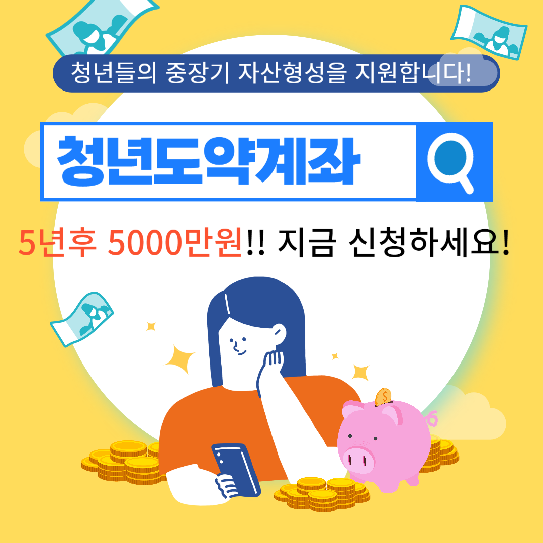 5년 적금으로 목돈을 만들수 있는 청년도약계좌에 대해 알아보았습니다. 가입 조건이 되시는 분들은 손해보지 마시고 꼭 가입하시기 바랍니다.자세한 사항은 아새 서민금융진흥원에서 확인바랍니다.