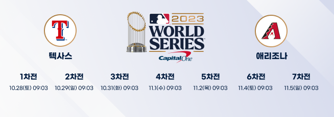 2023 메이저리그 월드시리즈 애리조나와 텍사스의 1차전 경기가 2023년 10월 28일(토) 오전 9시 30분 열립니다. 이 경기를 무료로 실시간 시청할 수 있는 곳에 대해 알아보겠습니다.
