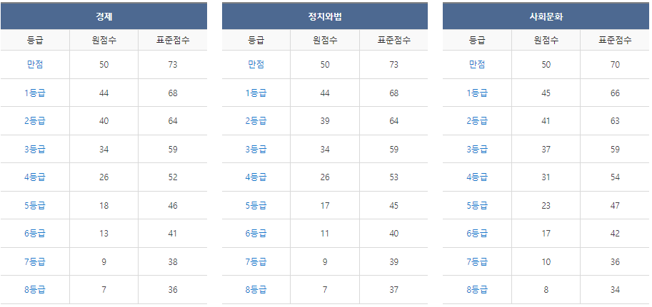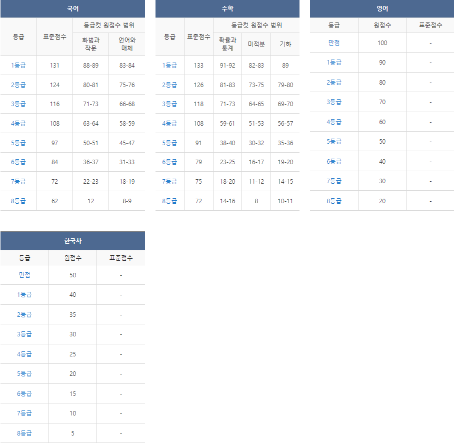 메가스터디 등급 컷